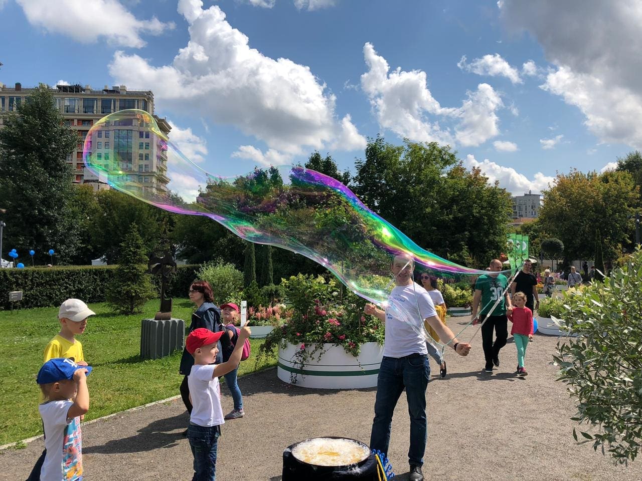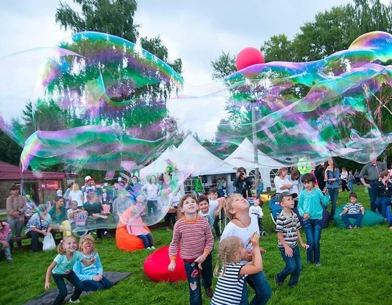 Blowing bubbles is fun – but a professional outdoor bubble show is on a completely different level.