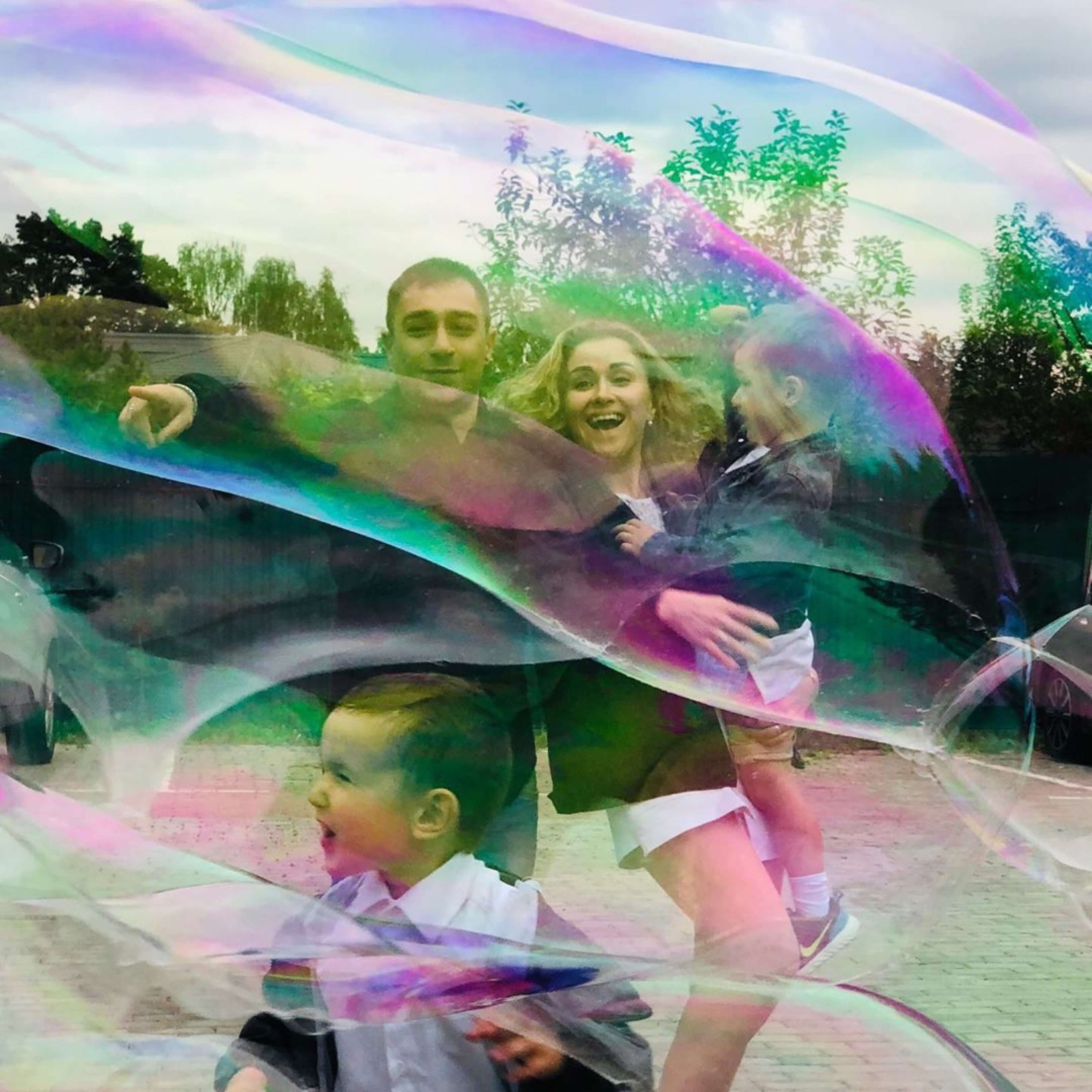 For years, Egor and Vera have created unforgettable outdoor bubble shows across Austria – from intimate garden parties to large city festivals. Their performances combine art, music, and joy – always delivered with heart, experience, and style.
