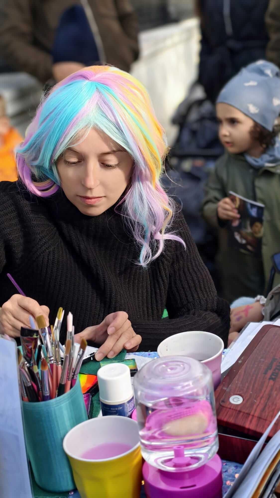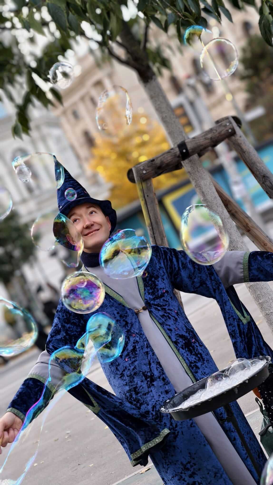 Egor präsentierte vor Ort eine Live-Performance mit Seifenblasen – leuchtende, schwebende Formen, die die Aufmerksamkeit auf sich ziehen, ohne laut zu sein. Vera ergänzte den Tag mit Kinderschminken – kleine, fröhliche Designs, die viele Familien an den Stand lockten.