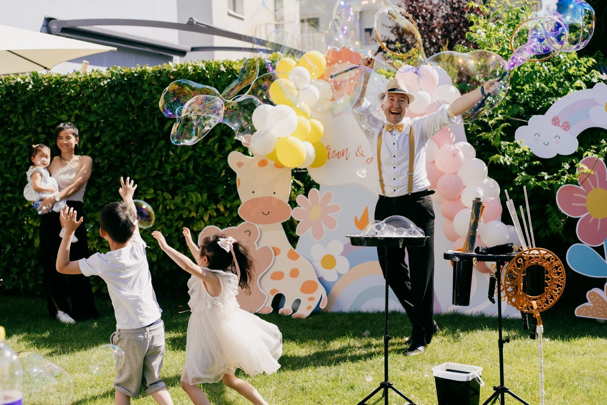 Если хочется сделать праздник ещё более запоминающимся, можно добавить шоу на Пасху с мыльными пузырями. Весной такие выступления особенно эффектно смотрятся на улице. Солнечный свет делает пузыри яркими и переливающимися всеми цветами 🌈