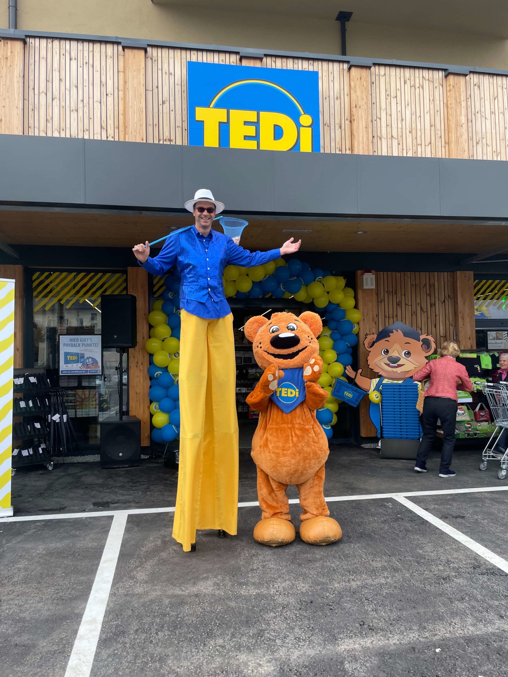 Unser Team modellierte bunte Ballonfiguren und malte und sorgte für viele strahlende Gesichter. Besucherinnen und Besucher des neuen TEDi-Marktes blieben stehen, machten Fotos, lachten mit – und der ganze Platz füllte sich mit guter Laune.